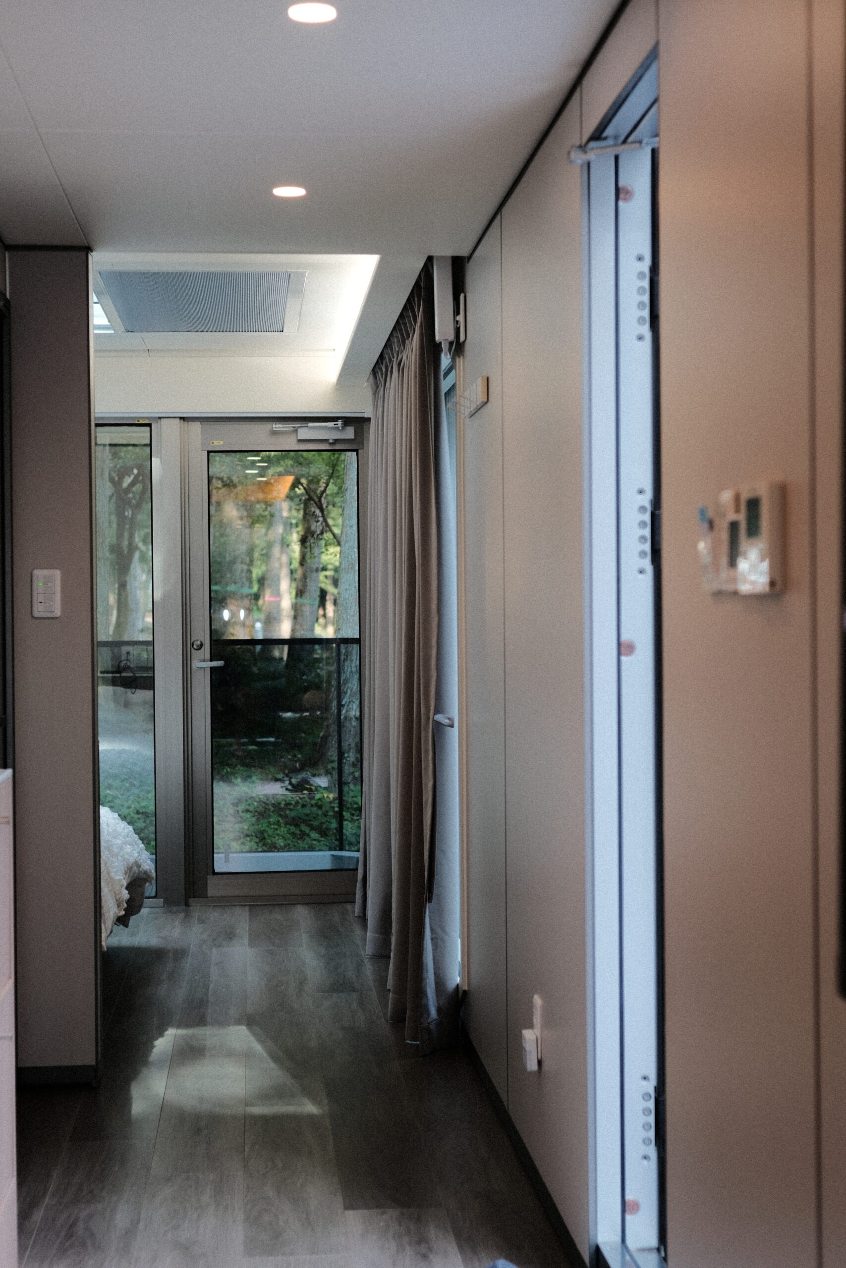 LQは、36.8平方メートルの広々とした空間を持つ1LDKモデルです。流動的な外観とバルコニーを備えた柔軟なデザインが特徴です。リビングルームには床から天井までの大きな窓を採用し、室内に豊富な自然光を取り入れ、美観と実用性を兼ね備えています。LQには以下の設備が標準搭載されています:ベッド.水回り設備.小型キッチン.除湿機.エアコン.プロジェクター.天幕シアター.スマートテレビ.換気扇